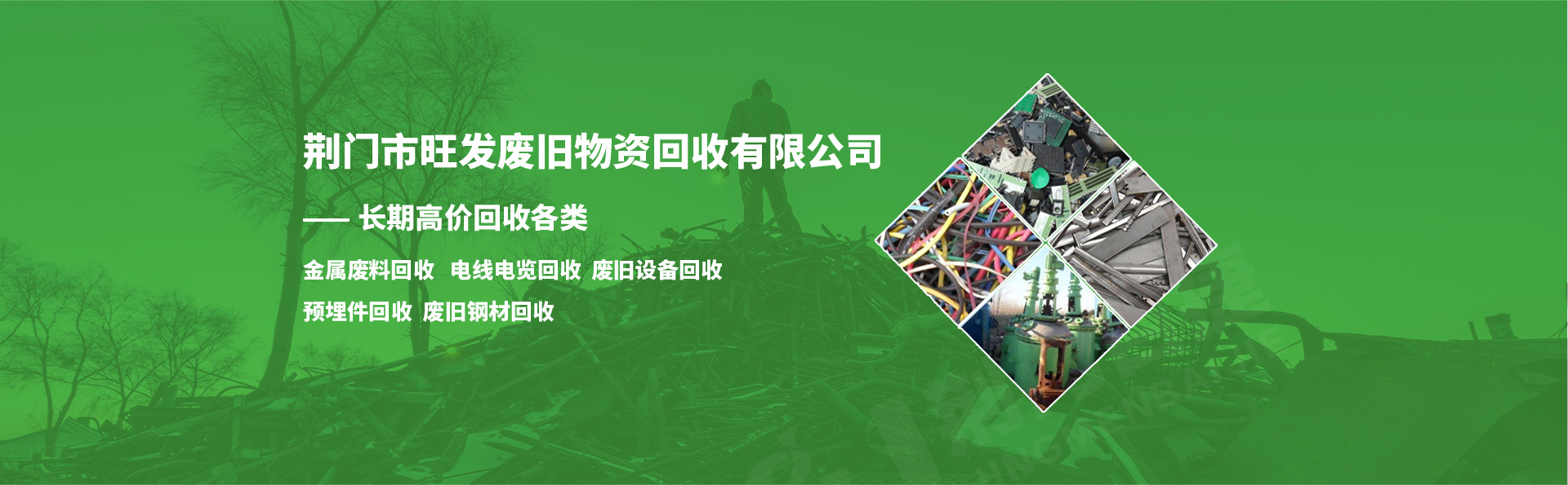 荊門(mén)市旺發(fā)廢舊物資回收有限公司,長(zhǎng)期高價(jià)上門(mén)收購(gòu)廢舊鋼材、有色金屬和廢舊設(shè)備及物資。價(jià)格合理、誠(chéng)實(shí)守信、安全方便,愿有廢舊物資需要處理的企業(yè)單位及個(gè)人聯(lián)系洽談回收事宜。 荊門(mén)市旺發(fā)廢舊物資回收有限公司,我們本著互利共贏的宗旨,愿與您攜手共創(chuàng)美好的明天!歡迎廣大朋友們來(lái)電咨詢!